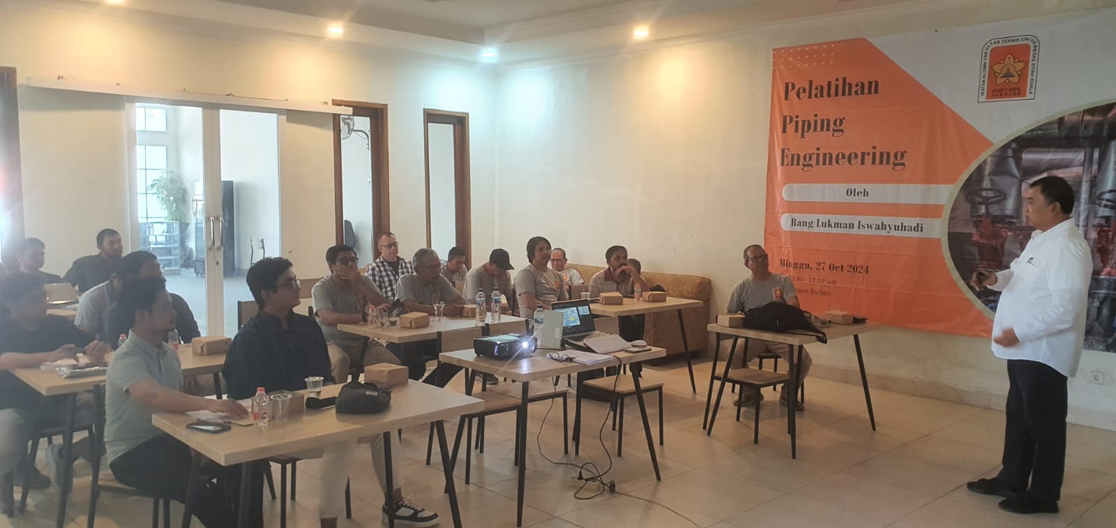 Pelatihan Piping Engineering yang diberikan oleh Senior Alumni, Bang Lukman Iswahyuhadi, dihadiri oleh alumni muda yang bekerja dan berdomisili di Cilegon. Alumni Muda bersemangat menimba ilmu untuk menambah bekal di tempat kerja.
